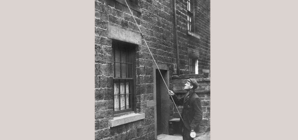 حيث كان الموقِظ وهو شخص مهمته إيقاظ الناس في الصباح، يحصل على بضعة بنسات أسبوعياً لإيقاظ العمال، إذ كان يطرق أبوابهم باستخدام عصا قصيرة، أو يقرع على النوافذ العلوية مستخدماً عصا طويلة ولا يتحرك الموقظ للمنزل التالي حتى يتلقى تأكيداً على أن عميله قد استيقظ وتحرك بالفعل.