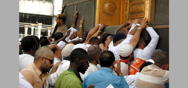 أيادٍ بكل الألوان، أتت من كل فج عميق، لتتلاقى على «باب بيت الله».. وتتشبث بأطهر الرحاب، لتستريح الروح المشتاقة منذ زمن، ولينطلق اللسان بالدعوات، والعين بالعبرات، في أفضل مكان.