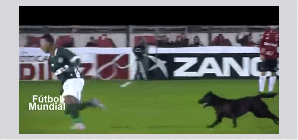 اخترق كلب أرضية ملعب المباراة التي جمعت فريقي "برازيل دي بيلوتاس" أمام "غوياس" في دوري الدرجة الثانية البرازيلي، مخترقا بذلك جميع الخطوط البيض والحمر والخضر كذلك، وجميع من حضروا اللقاء من جمهور وحراس وعناصر أمن.