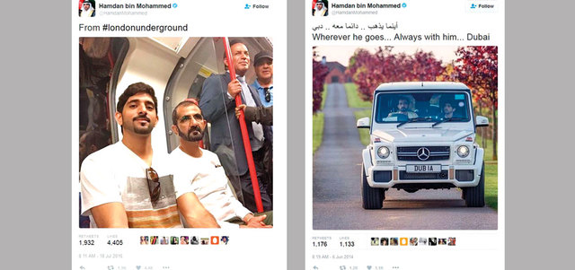 ويعد سمو ولي عهد دبي من بين أكثر القادة تأثيراً في المنطقة، وقد انضم إلى «تويتر» خلال شهر مارس 2010، إذ يستخدمه منبراً لمناقشة السياسات والمبادرات المتنوعة التي تضعها الحكومة؛ مثل إطلاق ترام دبي، وخطة دبي لعام 2021. ويقدم حساب سمو الشيخ حمدان بن محمد بن راشد آل مكتوم، على «تويتر»، لمحات فريدة عن عمليات التخطيط والتنفيذ للمبادرات المختلفة، فضلاً عن تغريدات تظهر حبه للوطن؛ وذلك بالتزامن مع سعي دبي لترسيخ مكانتها مركزاً للابتكار في المنطقة، وتحقيق رؤيتها لتصبح مدينة ذكية ومتصلة بالكامل استعداداً لمعرض «إكسبو 2020 دبي». وقالت مديرة الشراكات الإعلامية في الشرق الأوسط وشمال إفريقيا لدى «تويتر»، كندة إبراهيم، إن «تويتر» أصبح حلقة وصل بين القادة أصحاب الرؤى الطموحة وبين متابعيهم من مختلف أنحاء العالم، معربة عن تطلع «تويتر» إلى تحسين هذه المنصة، وسد أي فجوة قد تفصل بينهم.