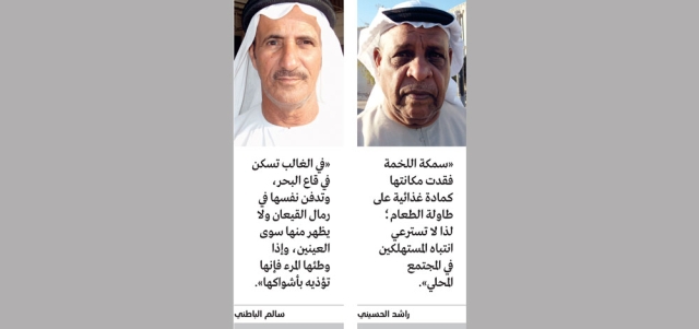 راشد الحسيني وهو أحد المهتمين بالثروة السمكية، يقول بنوع من الحسرة «في السابق كانت سمكة اللخمة ضمن الوليمة الغذائية ويتناولها جميع السكان، لكن مع تطور الحياة المعيشية فقدت مكانتها كمادة غذائية على طاولة الطعام؛ لذا لا تسترعي إليها انتباه المستهلكين في المجتمع المحلي».