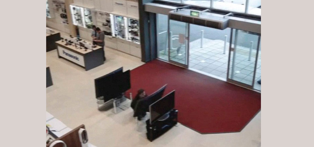 وقال إن التلفزيونات كانت قد تم وضعها بتلك الطريقة في مدخل المتجر كطريقة جديدة للعرض يمكن أن تجذب الزبائن.