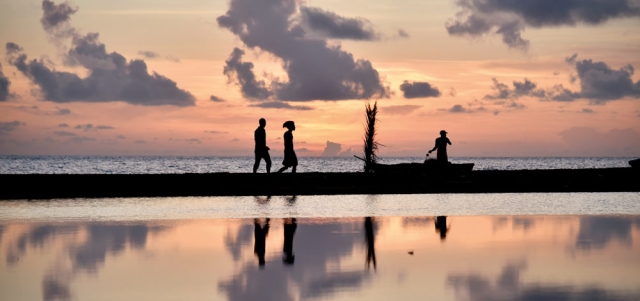صيادون على الشاطئ الذي تضرّر من إعصار ماثيو، بميناء في ليه كاييه، جنوب غرب هايتي.