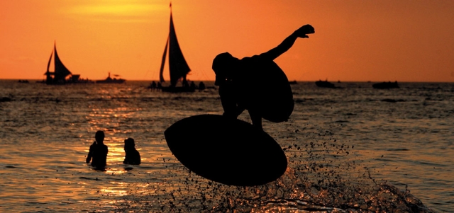 «ركمجة» ومرح مع الأمواج، والشمس المغادرة على أحد شواطئ الإمارات الجميلة في العاصمة أبوظبي.