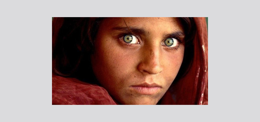 وصورها مكوري في ديسمبر 1984 عندما كانت لاجئة في الثانية عشرة من العمر في مخيم على الحدود الباكستانية الأفغانية، ثم ظهرت الصورة على غلاف مجلة " ناشونال جيوغرافيك" في يونيو 1985 واستخدمت على نطاق واسع.