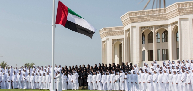 رفع سمو الشيخ حامد بن زايد آل نهيان، رئيس ديوان ولي عهد أبوظبي، علم الدولة في ساحة الديوان، أمس، تخلله عزف السلام الوطني بمناسبة احتفال الدولة بيوم العلم الذي يصادف الثالث من نوفمبر من كل عام. وعبّر سموه عن اعتزازه بما وصلت إليه دولة الإمارات العربية المتحدة، بقيادة صاحب السمو الشيخ خليفة بن زايد آل نهيان، رئيس الدولة، من مكانة رفيعة، ودور سموه في تعزيز أركان الاتحاد، وتمكينها من مواصلة مسيرة التقدم والازدهار في كل المجالات. وقال سمو الشيخ حامد بن زايد آل نهيان إن هذا اليوم يمثل مناسبة وطنية عزيزة على قلوبنا جميعاً في تولي صاحب السمو الشيخ خليفة بن زايد آل نهيان رئاسة الدولة، وهو ما يعكس مسيرة الخير والعطاء المستمرة والمتواصلة التي بدأت بوضع اللبنة الأولى لأساس اتحاد قوي ومتين، على يد المغفور له الشيخ زايد بن سلطان آل نهيان، وإخوانه المؤسسين. وأضاف سموه أن رفع العلم له دلالات عميقة في نفوس أبناء الوطن من الحب والوفاء والانتماء للوطن ولقيادته الحكيمة، التي زرعت فينا قيم الإخلاص في العمل والعطاء والتميز، حتى غدت دولتنا الحبيبة تحتل مكانتها العالية والرفيعة بين دول العالم.