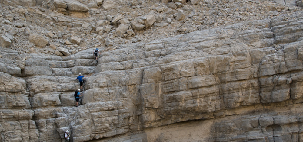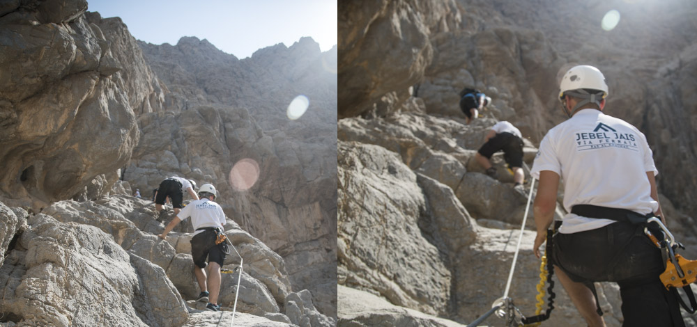 وتمتد جولات التسلق من فيا فيراتا على ثلاثة مراحل، تبدأ بالواجهات الصخرية في جبل جيس، صاحب أعلى قمة في البلاد بارتفاع 6,266 قدم ويقع ضمن سلسلة جبال الحجر الوعرة حيث ينخفض متوسط درجة الحرارة إلى 10 درجة مئوية تحت متوسط درجات الحرارة في منطقة الخليج.