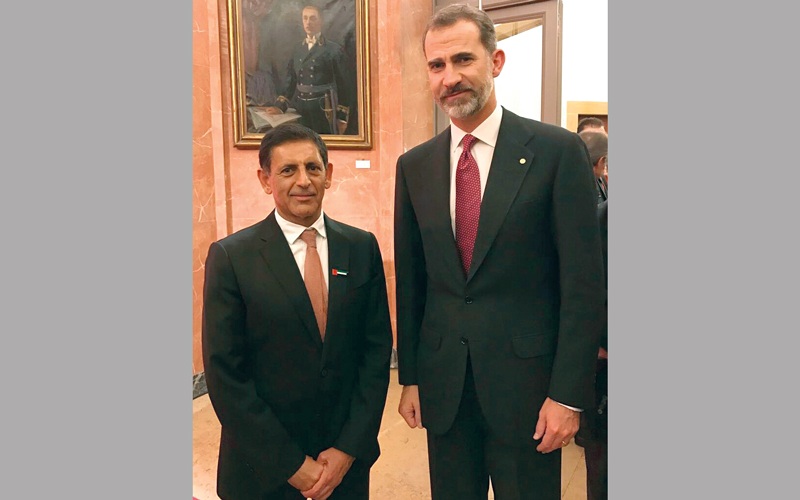 فيليب السادس وسالم العويس خلال اللقاء. وام