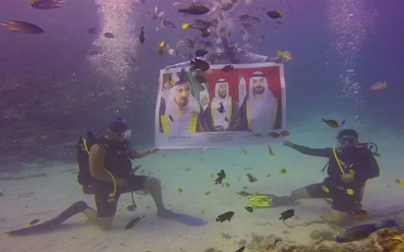 بالصور.. غواصون سعوديون يحتفلون باليوم الوطني الإماراتي في أعماق البحار