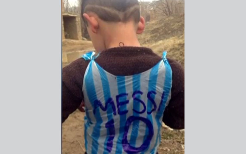 التقى الصبي الأفغاني البالغ من العمر 5 أعوام والذي ظهر في صورة على الانترنت وهو يرتدي كيسا من البلاستيك يحمل اسم لاعب الكرة لونيل ميسي والرقم 10 من الخلف أخيرا نجمه المفضل وجها لوجه.