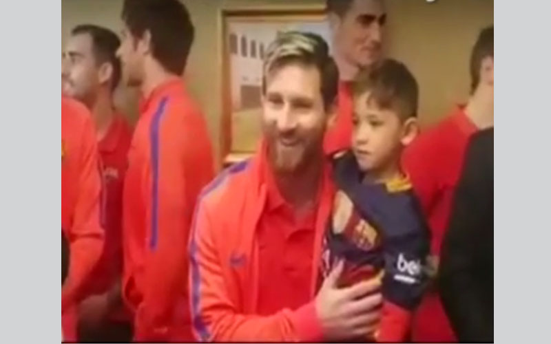 طفل "القميص البلاستيكي" الذي كتب عليه اسم ميسي يلتقي مثله الأعلى