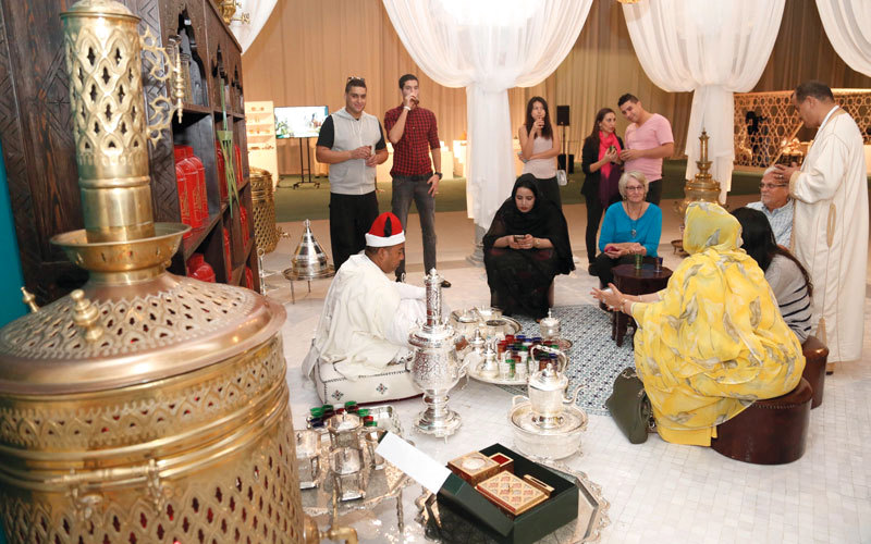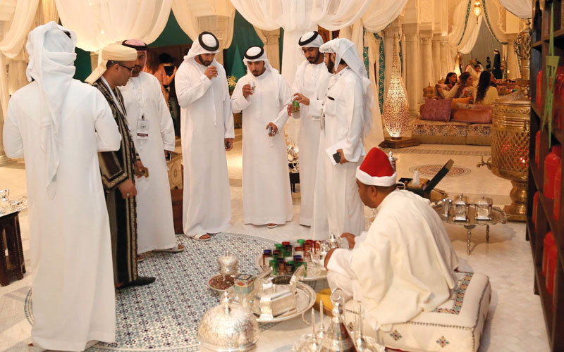 على أنغام الموسيقى وبين زوايا أروقة فعالية «المغرب في أبوظبي»، هناك قسم خاص لرواية الحكايات المغربية القديمة، فعلى كرسيه يجلس متربعاً العم راشد عثماني، ليروي لزوار الفعالية حكايات مغربية أصيلة نحتها الزمان في ذاكرته العامرة بالمغامرات، فمع كل كأس من الشاي يصب إليك قصة عاصرها هو أو أحد أجداده المشهورين بصنع الشاي المغربي.