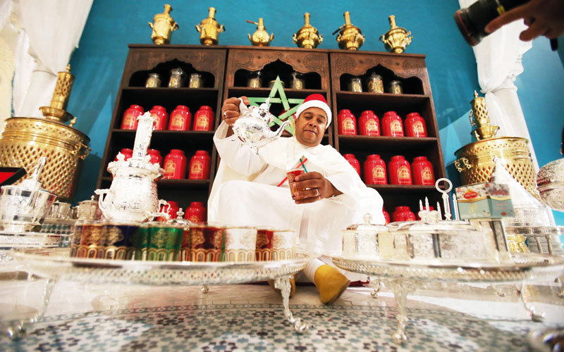 «الأتاي»، كما يسميه المغاربة، هو الشاي الأخضر، ليس مجرد شاي تحتسيه على عجل، فمع كل رشفة تسافر إلى بلد الحكايات والجمال، إلى بلد امتزجت به العراقة والأصالة، لتشكل خليطاً من التراث المعاصر، هكذا قال العم راشد عثماني، وأضاف أن له مكانة خاصة، ليس فقط في موائد الطعام، وإنما في دواوين الشعراء والأدباء، الذين أفرد كثير منهم لهذا المشروب العجيب قصائد شعرية وزجلاً ومتوناً لم تترك صغيرة ولا كبيرة عنه إلا وأبرزتها، فمعه تتجمع العوائل، وتقام المناسبات، ويؤنس المسافر في رحلته. وكشف العم راشد أنه يمكن تمييز الشاي المغربي المعد بشكل جيد من رائحته، كالنعناع أو السالمية، العطرشة، الصوفي، العبدي والشيبة، وغيرها من الأعشاب الطبية والعطرية التي يضيفها المغاربة إلى «حبوب أتاي» كخصوصية محلية دوائية وذوقية، لافتاً إلى أنه حتى بالنعناع نفسه تجد 50 نوعاً بين مدينة وأخرى، لذلك تتنوع خلطات «أتاي» التي يعترف الجميع بجانبها الصحي.