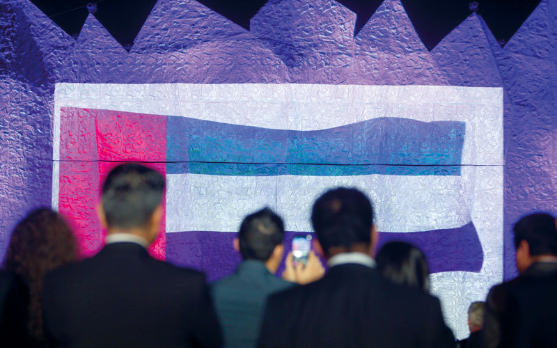 قُدّمت في بداية الحفل الأغنية التي حملت عنوان «كل عجائب الكون»، التي ألّفها الموسيقي العالمي آلان مينكن. وأعلن الموسيقي العالمي الحائز مجموعة من الجوائز العالمية في مجال الموسيقى، عن سعادته لتقديم هذه الأغنية للوجهة بصوت ابنته. رافق مينكن ابنته عزفاً على البيانو على المسرح، لترافق صوتها العذب الإضاءة المتحركة في السماء، التي راحت تتماوج وفق ألوان متبدلة مع الوقت وترسم أشكالاً تعبر عن معاني الأغنية، فشكلت في البدء النجمة، ثم الأمواج والقلب لتختتم الأغنية مع رسم هذه الأضواء إشارة صاحب السمو الشيخ محمد بن راشد آل مكتوم، الثلاثية التي تعني الفوز والحب والنصر.
