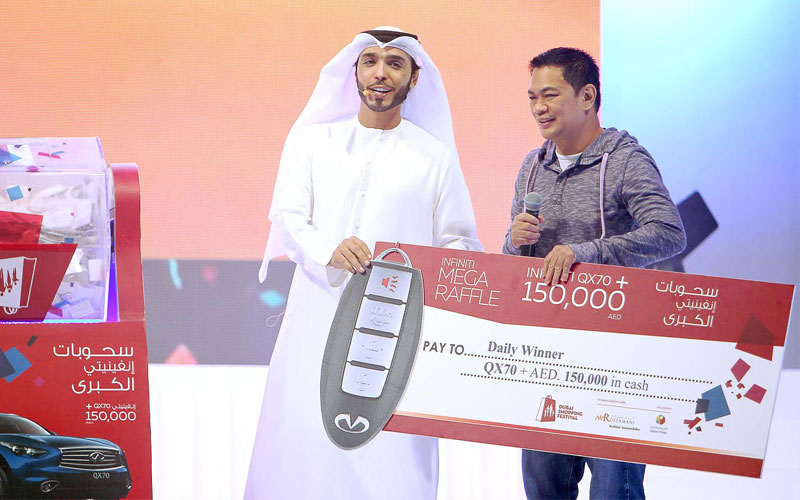 فلبيني يفقد وظيفته ومهرجان دبي للتسوّق يعوضه بسيارة إنفينيتي QX70 و150 ألف درهم