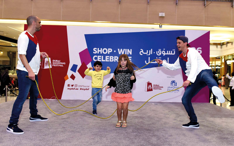 تتواصل الفعاليات الترفيهية خلال مهرجان دبي للتسوّق لتمنح المتسوّقين مزيداً من البهجة، وتقدم أوقاتاً ممتعة لكل أفراد العائلة. وتشمل مجموعة الفعاليات الترفيهية، التي تقام في المراكز التجارية، العديد من الأنشطة التي تتنوّع بين العروض المستوحاة من قصة أليس في بلاد العجائب، وعروض السيرك المنغولي. وتشمل العروض المراكز التجارية لتمنح المتسوّقين أجواء ممتعة أثناء التسوّق. في «سيتي ووك»، في الفترة من 5 إلى 11 الجاري، تنظم عروض بلاد العجائب «مغامرات أليس»، ويشارك في العرض ثمانية محترفين من المؤدين والممثلين وفناني السيرك. وفي «مردف سيتي سنتر» تختتم اليوم عروض «كوكب القفز على الحبل»، الذي تقدمه