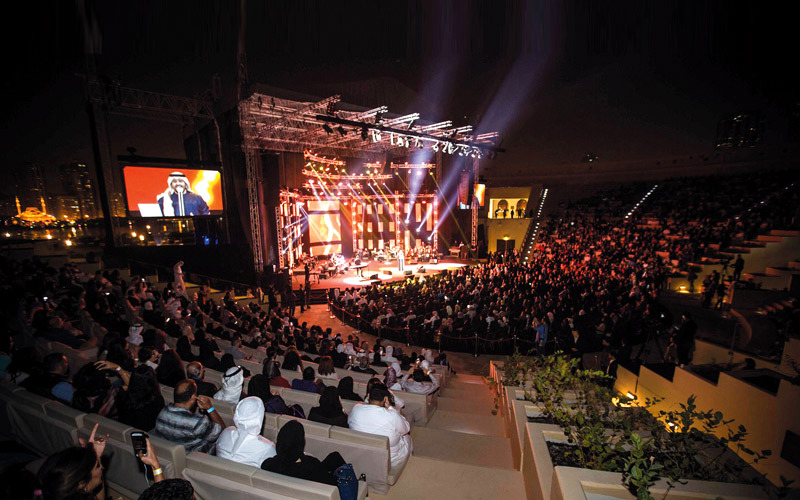 وتقدم الفنان الإماراتي حسين الجسمي على خشبة المسرح، مرحباً بجمهوره الذي بادله التحية بصيحات الإعجاب والتصفيق الحاد، ليثبت عبر مسيرته الفنية الحافلة بالنجاحات، وصوته الجهوري الذي ينبض به القلب إعجاباً، واختياره الموفق دائماً لكلمات أغنياته، أن ريادة الفن الإماراتي، والموسيقى تحديداً، إبداع ينسجه الجسمي بأغنياته التي تسلب الوجدان.