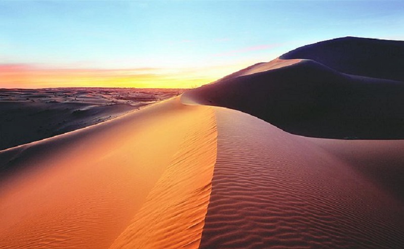 جمعنا لكم مشاهد رائعة للحظات انعكاس أنوار الغروب على رمال الصحراء، في مقطع فيديو قصير.