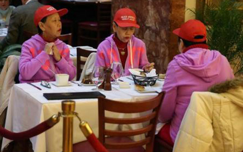 حيث اشترى كثيرون قبعات بيسبول حمراء كتب عليها شعار ترامب "لنجعل أمريكا عظمى مرة أخرى" دون علمهم أنها مصنوعة في الصين وفيتنام وبنجلادش.