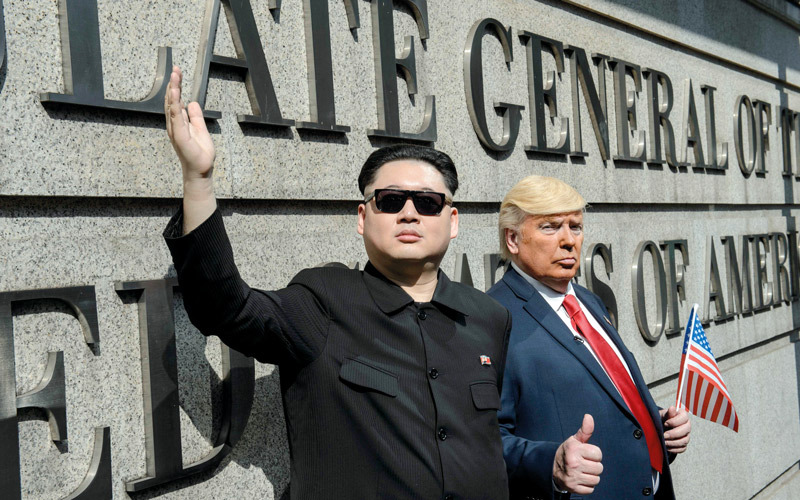 شبيها ترامب وكيم أون أثارا الدهشة في إحدى أسواق هونغ كونغ. رويترز
