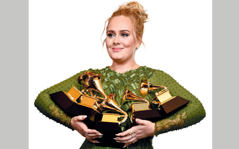 اكتسحت النجمة البريطانية أديل حفل جوائز «غرامي» الموسيقية، حيث فازت بأكبر ثلاث جوائز، وهي أفضل ألبوم وأفضل أغنية مسجلة وأغنية العام، وحققت انتصاراً تاريخياً مفاجئاً على المغنية الأميركية بيونسيه في ليلة محملة بالتصريحات السياسية والتأبين المفعم بالشجن.