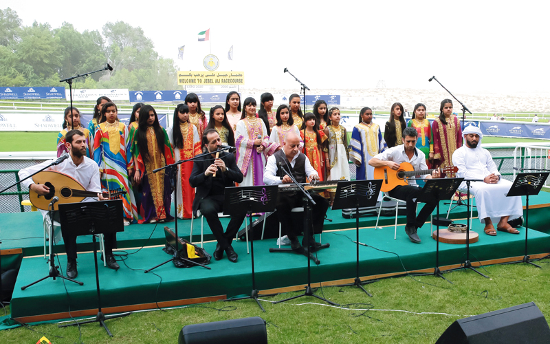 بالأنغام الجميلة، افتتح قسم الموسيقى في مركز الجليلة لثقافة الطفل بدبي سباقات مضمار جبل علي، أول من أمس، وسط تفاعل الجمهور مع الفن الأصيل.