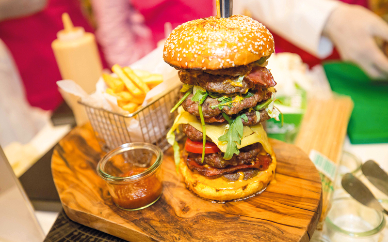 وتكونت أغلى وجبة برغر في العالم، التي أطلق عليها اسم «سبع وجبات لسبع إمارات» من سبع شرائح من أجود لحوم الضأن، مع الجبن الشيدر المعتق، ولحم العجل المقدد في خبز بريوش بالزعفران، مع إضافة سبعة أنواع من التوابل.