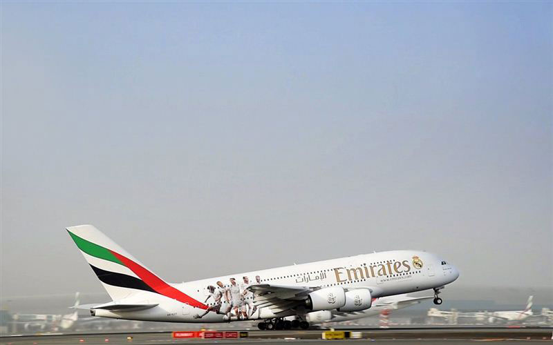 بالصور.. طيران الإمارات تكشف عن ملصق ضخم لنجوم ريال مدريد على الإيرباص A380