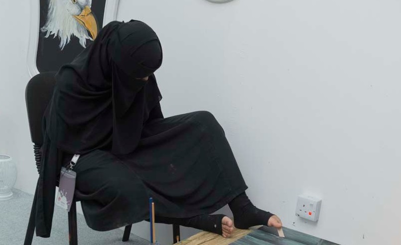 فتاة سعودية ترسم بقدميها في "مسك آرت"