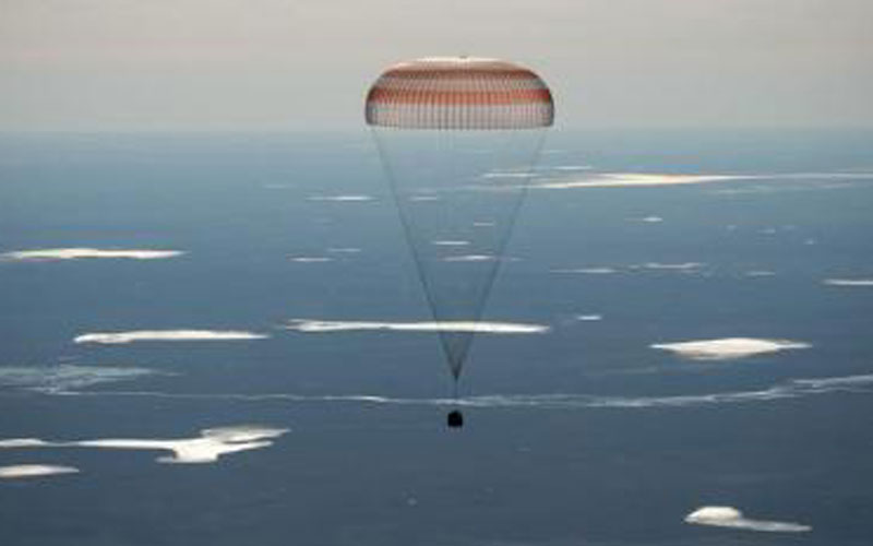 عرض تلفزيون إدارة الطيران والفضاء الأميركية (ناسا) بثا حيا لهبوط ثلاثة رواد فضاء، وهما أميركي وروسيان، في قازاخستان، في ختام مهمة استغرقت نحو ستة أشهر في محطة الفضاء الدولية.