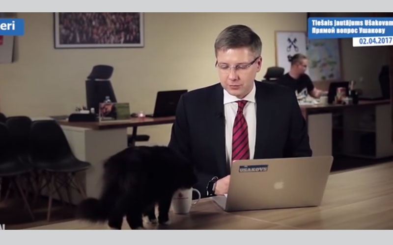 اقتحمت قطة بثاً مباشراً على موقع "فيس بوك" لعمدة ريغا، عاصمة لاتفيا، أثناء تلقيه أسئلة من الجمهور وإجابته عنها وفقا لما جاء في موقع "العربية".