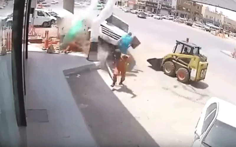نجا عامل يحمل جنسية آسيوية من موت حتمي، بعد اقتحام سيارة فقد صاحبها السيطرة عليها للمكان الذي كان يقف فيه.