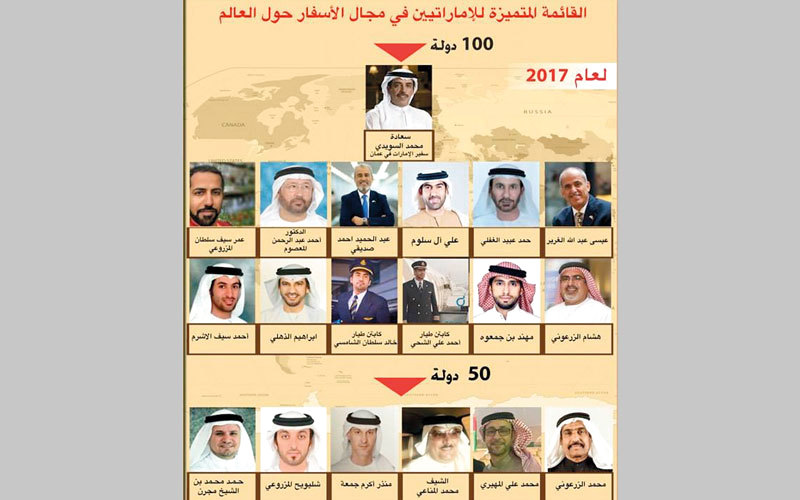 قائمة ذهبية لـ 13 إماراتياً زاروا 100 دولة