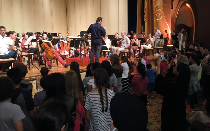 طلاب المدارس أثناء حضور العرض الخاص لأوركسترا تولوز في قصر الإمارات. من المصدر