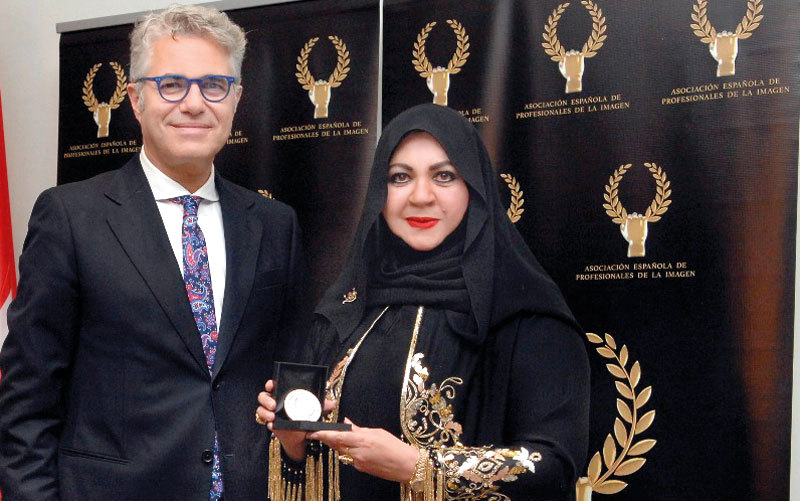 كُرّمت المصممة الإماراتية منى المنصوري في مدريد مع ثلاثين فناناً ورساماً من العالم، عن دورها وبصماتها في المجتمع من خلال الفن الذي تؤديه والرسائل التي ترسلها عبر أعمالها.
