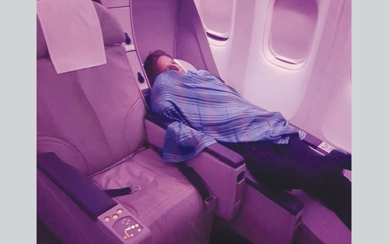 وأوكل الطيار مهمة قيادة الطائرة لطيار مازال في مرحلة التدريب، فيما أخذ الطيار قيلولته على أحد مقاعد درجة رجال الأعمال.