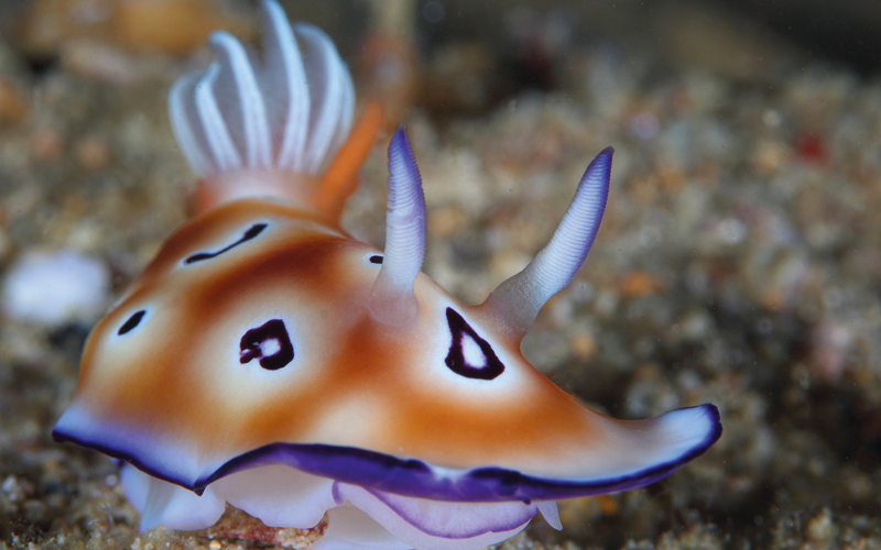 عاريات الخيشوم أو الأرانب البحرية، حجمها صغير جداً بحيث لا يتجاوز بضع بوصات، وتنتشر على أجسامها أطواق وزوائد ونتوءات، وتختلف ألوانها الجميلة والجذابة باختلاف لون الطحالب التي تتناولها، ومن غذائها إضافة إلى الطحالب، الأسفنج، وقناديل البحر، وبعض أنواع المحار. والذي يساعدها على تناول طعامها لسانها الطويل وأسنانها الفتاكة. وتتكاثر إما عن طريق حيوان من نوعها يقوم بتخصيب بيوضها، أو تقوم بهذه العملية بنفسها، حيث تتواجد أعضاء التأنيث والتذكير فيها مجتمعة معاً.
