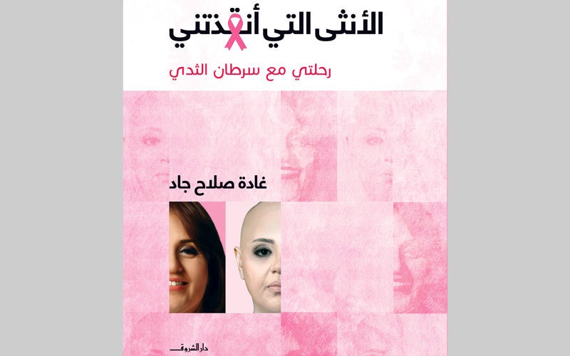بغلاف وردي، مفعم بألوان وكلمات متفائلة، يأتي كتاب «الأنثى التي أنقذتني»، الذي تروي فيه غادة صلاح جاد، رحلتها مع سرطان الثدي.
