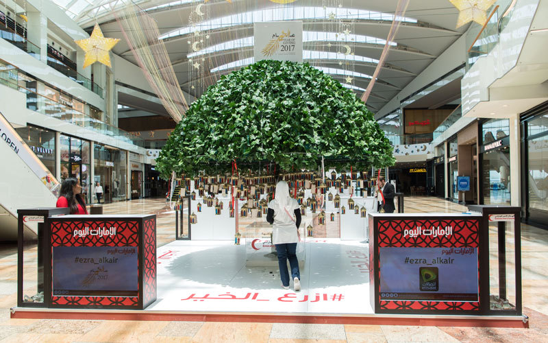 - «شجرة العطاء» أطلقتها «الإمارات اليوم» في «عام الخير» - هدفت هذه الشجرة إلى نشر ثقافة الخير، وثقافة الأحلام الجميلة - يختصر الأطفال أحلامهم في حروف بسيطة، وأحياناً مع أخطاء إملائية |