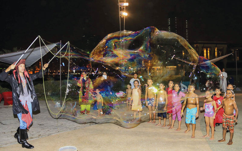وتفاعل عدد كبير من الأطفال بالبرنامج الترفيهي، الذي تضمن ورشة الرسم على الوجه، وورشة تلوين المجسمات، إلى جانب مشاركة القرصان في لعبة الفقاعات المائية، التي يصنعها بأحجام مختلفة، ويتخللها كثير من الفقرات المسلية والمضحكة، حيث يطارد الأطفال أقرانهم، محاولين رشهم بكرات المياه الصغيرة، عبر رشاشات لعب خاصة، إضافة إلى مشاركتهم في ورش العمل التفاعلية، والتقاط الصور التذكارية لأجمل الأوقات التي يقضونها في الواجهة المائية.