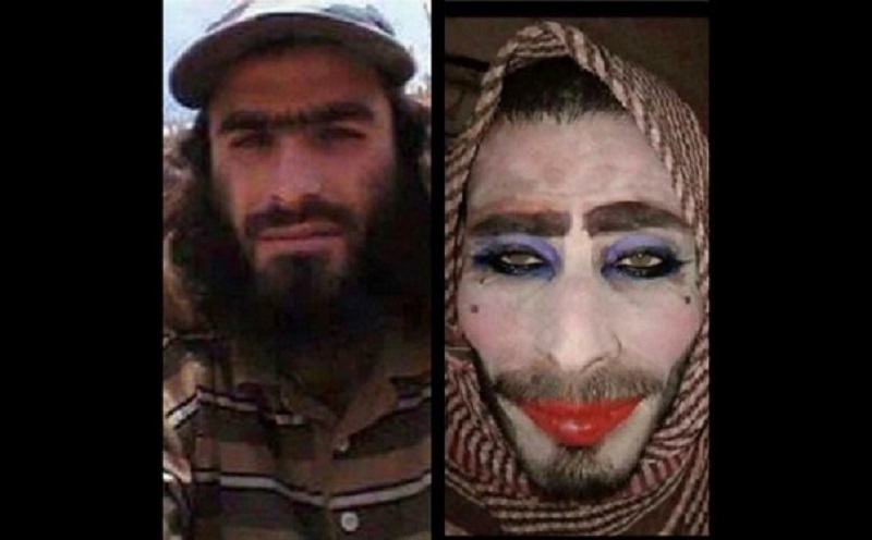 وتداولت مواقع التواصل الاجتماعي صورة" الداعشي" نقلا عن موقع العربية وقد وضع على وجهه كميات كبيرة من مساحيق التجميل بطريقة منفرة ومبالغ فيها لكنه ارتكب حماقة غير مسبوقة اذ نسي حلق شاربه والتخلص من ذقنه بالكامل ما سهل وقوعة في قبضة الجيش، و لم تذكر مصادر في الجيش العراقي اسم هذا الرجل ولا أسماء سواه ممن اعتقلهم متنكرين، بل نشرت صورهم بثيابهم النسائية التي استخدموها، وأهمها صورة من نسي ذقنه وشاربه قبل وبعد التنكر