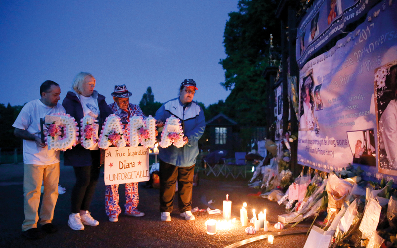 وأضاء المحتشدون الشموع في الظلام في المكان نفسه، الذي تدفق إليه عشرات الآلاف عام 1997 للمشاركة في تشييع جنازة واحدة من أشهر الشخصيات النسائية في العالم، بعد وفاتها بحادث سيارة في العاصمة الفرنسية باريس.