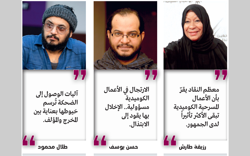 «الضحكة» هي كلمة السر في المسرح الجماهيري، وزادها الأساسي، وراهنت على جمهور بات أكثر إلحاحاً في طلبها، فحسب العديد من الفنانين الذين شاركوا في أعمال كوميدية في مختلف إمارات الدولة، خلال إجازات العيدين، فإن الفارق كبير بين الضحكة المتكئة على الموقف الكوميدي، وسواها التي قد تهبط إلى الإسفاف والسخرية، حينما يصبح اللعب على الألفاظ منهجاً، والبحث عن الضحكة على حساب المحتوى الدرامي وسيلة.