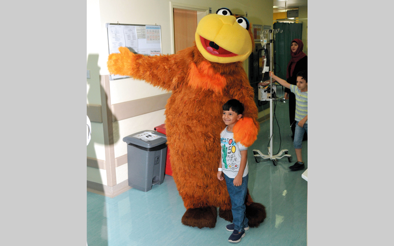 رسمت شخصيات «افتح يا سمسم» الابتسامة على وجوه الأطفال في في مدينة الشيخ خليفة الطبية بأبوظبي.