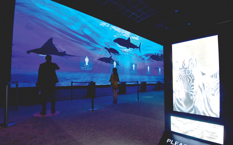 وحول أقسام الوجهة، لفت إلى أنها تنقسم إلى 12 قسماً، تبدأ من الشاشة التفاعلية التي تأخذ الزائر في رحلة إلى عالم البحار والمحيطات مع الكائنات المائية، التي يمكن للزائر أن يختار ومن خلال الإشارة عبر الشاشة التفاعلية إلى الكائن الذي يريد معرفة بعض المعلومات عنه، حتى يتمكن من قراءتها تباعاً.