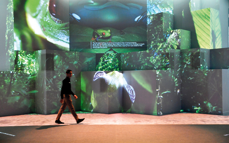 بعدها تبدأ الجولات في الأقسام الأخرى التي تكون أكثر تفاعلية، منها في القاعة 23.4 التي تقدم صوراً للعالم ليس لها مثيل عبر شاشة عملاقة بطول يفوق سبعة أمتار، وعرض يتجاوز 36.5 متراً، بالإضافة إلى شاشتين في الخلف، بالإضافة إلى قسم يبرز سحر يلوستون، المنتزه الذي يقع في الجبال شمال أميركا، فيما تحمل تجربة الطيران التي تعتمد على التكنولوجيا الزائر إلى رحلة فوق جبل كينيا الجليدي، فيتم التعرف إلى الجبل من خلال الصور، كما يتم أيضاً اختبار المناخ الجليدي في غرفة تصل درجة حرارتها إلى ما دون الصفر، والتي تبرز للزائر عبر الشاشات كيفية تفاعل جسمه مع البرودة، علماً بأن الوقوف فيها لا يكون لفترة طويلة.