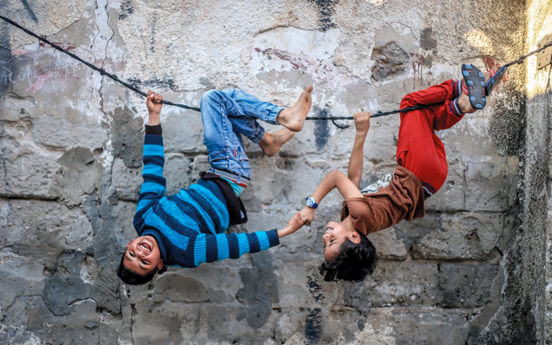 العدسة الفلسطينية تظهر مجدداً في قائمة الفائزين، لكن هذه المرة، من خلال لهو الصبية، وفرحة تجمعاتهم المليئة بالبهجة، حتى إن اقتربت سبيل الوصول إلى الأخير من حدود بعض المخاطرة، وهو المشهد الذي التقطه المصور الفلسطيني الشاب محمود أبوسلامة، حينما قرر أن يذهب بلقطة صبية يتدلون من حبل معلق في الهواء قرروا تسلقه بشكل معكوس، إلى أبعد من حدود فلسطين، من خلال المشاركة باللقطة الضوئية في المسابقة الإقليمية، وهي المشاركة التي ضمنت له جائزة فئة اختيار الجماهير.