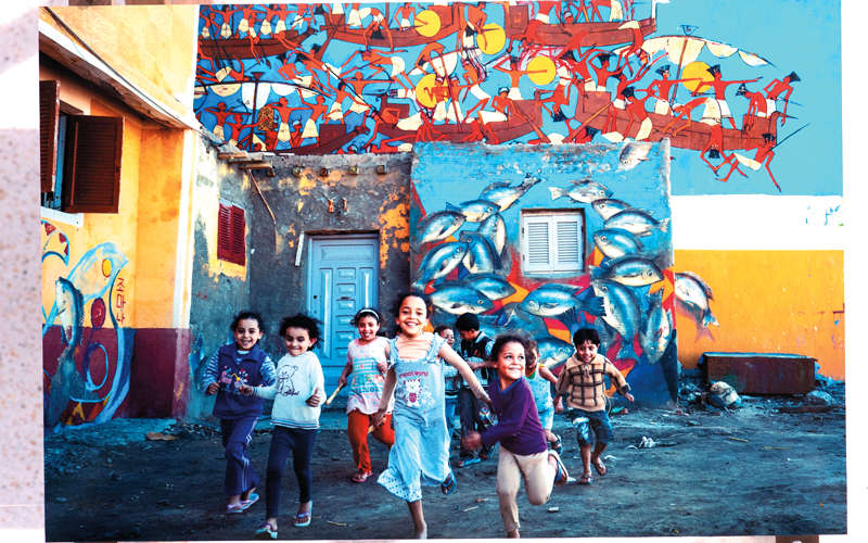 لهو الصبية في الأزقة يعود ليطل من جديد، لكن من أحد أزقة القاهرة العتيقة هذه المرة، من خلال صورة التقطها بشكل علوي الشاب بركات خالد، بدت فيها ملابس الأطفال كأنها كرنفال ألوان متسق مع تراب الأرض، ذي اللون الداكن، في حين بقي الفرح قاسماً مشتركاً بين المتحلقين لممارسة اللعب في حلقة دائرية، شهدت تقاذف طفلة في الهواء، كأن أذرع الجميع تحولت إلى بدائل لمحرك لعبة في مدينة ملاهٍ.