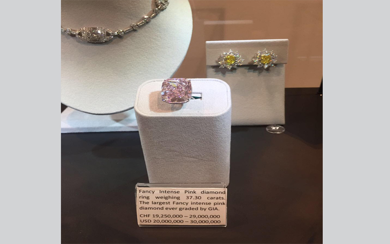 عرضت دار سوذبيز للمزادات في دبي، خاتماً بقيمة 20 مليون دولار، تتوسطه ماسة زهرية نادرة يصل وزنها إلى 37.30 قيراطاً.