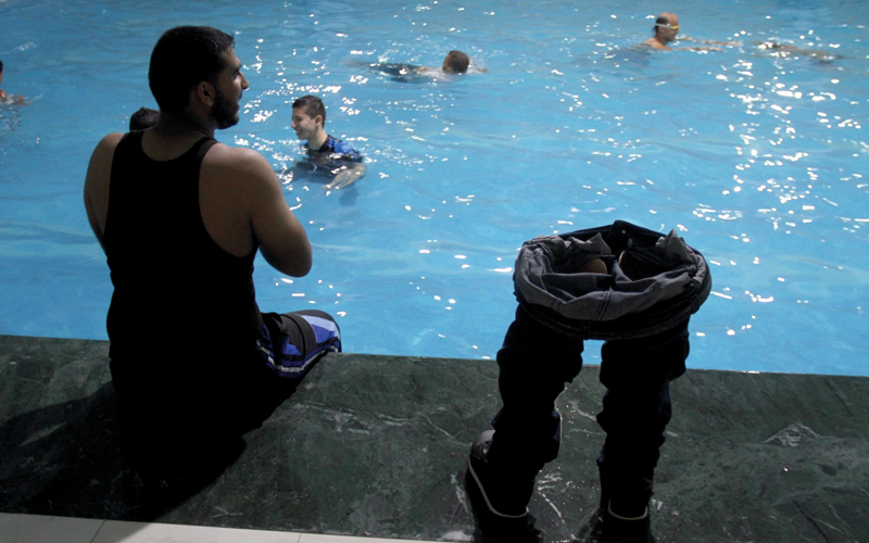 ويضيف «توجهت أنا والغواص إلى قرية الغواصين في إمارة دبي، للاستفسار عن إمكانية ممارستي الغوص، وبعد تفهّمهم لوضعي الصحي، والتحقق من عدم وجود مشكلات في القلب، وافقوا على خوضي التمارين، وتسلّم تدريبي عدد من المدربين الأجانب لتعليمي المهارات، وكيفية التواصل تحت الماء بالإشارة، والحركات اللازمة».